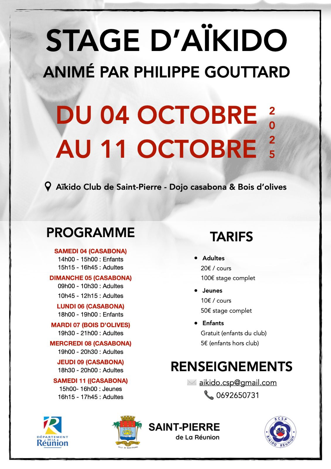 Stage animé par Philippe GOUTTARD 7e dan à St-Pierre du 4 au 11/10