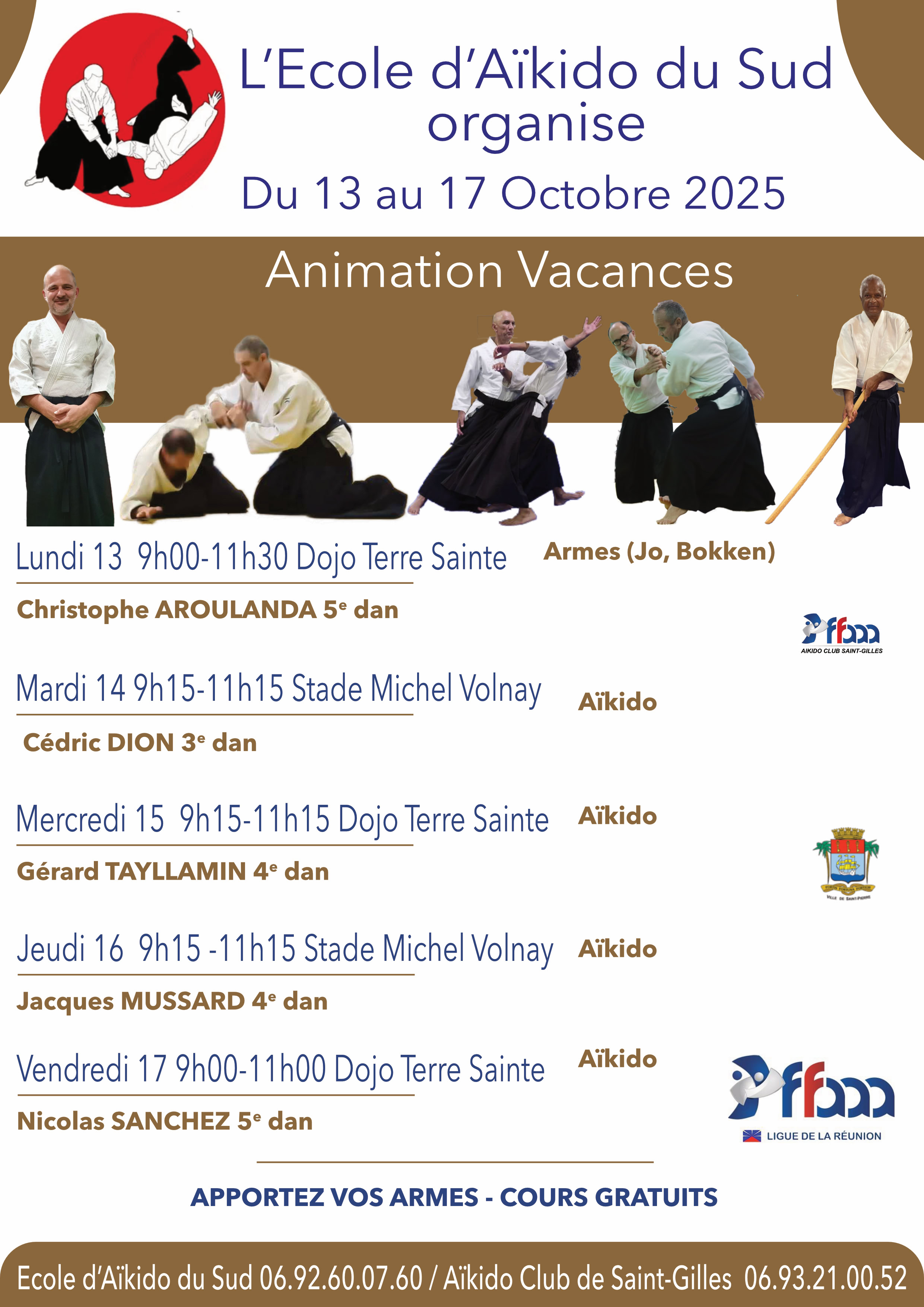 La vitalité, l’enthousiasme et le sérieux de l’Aïkido à La Réunion sont des qualités reconnues, et certaines de nos idées et projets trouvent un écho au niveau fédéral et métropolitain. Je vous encourage donc à continuer à pratiquer avec la même détermination et à partager ces valeurs autour de vous.