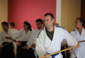 L’Aïkido est un art martial japonais fondé par Morihei Ueshiba, dont la caractéristique principale est d’utiliser la force et l’énergie de son assaillant en la retournant contre lui. Assimilée à une méthode de défense, cette discipline se compose de techniques avec armes ou à mains nues. Elle vise à décourager l’attaque et non à vaincre son adversaire.