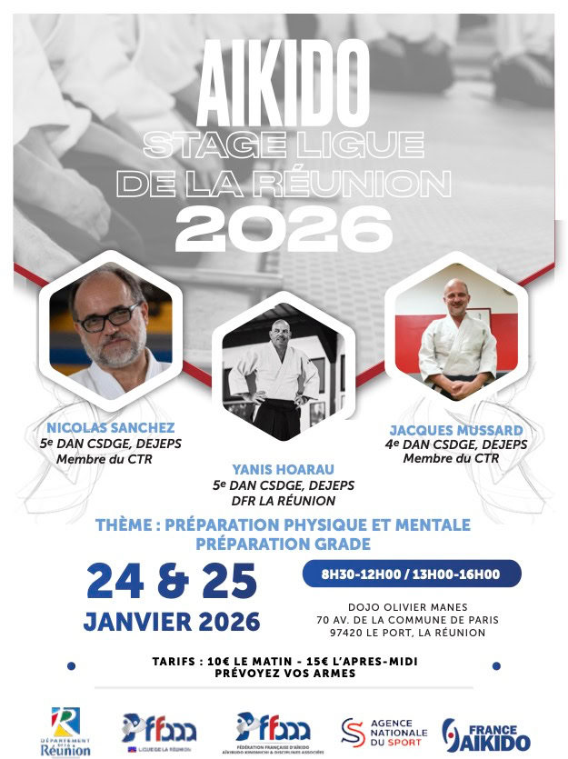 La vitalité, l’enthousiasme et le sérieux de l’Aïkido à La Réunion sont des qualités reconnues, et certaines de nos idées et projets trouvent un écho au niveau fédéral et métropolitain. Je vous encourage donc à continuer à pratiquer avec la même détermination et à partager ces valeurs autour de vous.